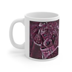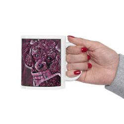Keep cozy and warm with a nice cuppa, featuring the beloved Toy Poodle dog breed stylized in our Coloromo Plump Wine art on a ceramic mug. Lead and BPA-free, these durable mugs are also microwave & dishwasher-safe. Made of white, resilient ceramic in an 11-ounce size, this is the perfect gift for coffee, tea, and hot chocolate lovers.