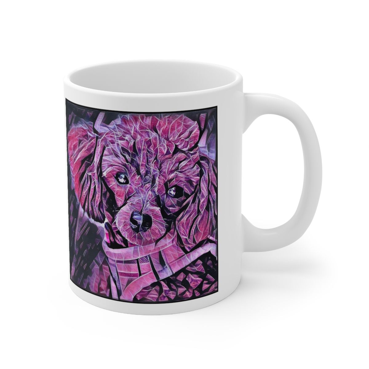 Keep cozy and warm with a nice cuppa, featuring the beloved Toy Poodle dog breed stylized in our Coloromo Violet Femmes art on a ceramic mug. Lead and BPA-free, these durable mugs are also microwave & dishwasher-safe. Made of white, resilient ceramic in an 11-ounce size, this is the perfect gift for coffee, tea, and hot chocolate lovers.