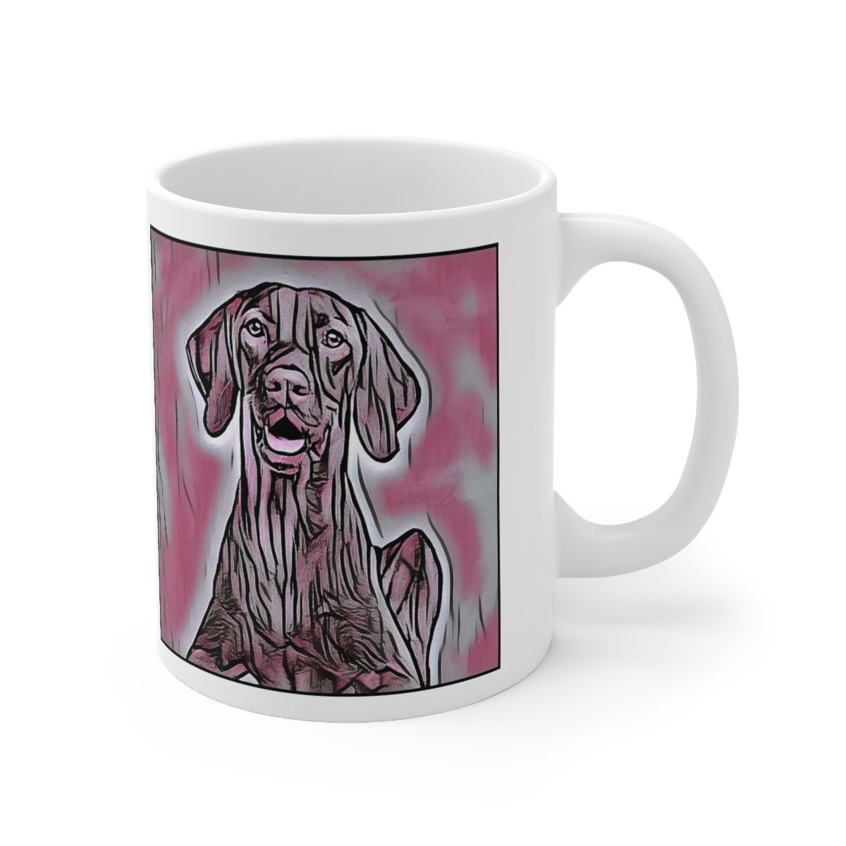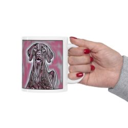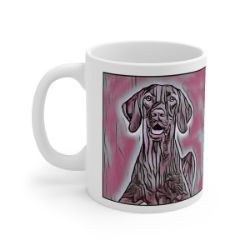 Keep cozy and warm with a nice cuppa, featuring the beloved Vizsla dog breed stylized in our Coloromo Comic Pink art on a ceramic mug. Lead and BPA-free, these durable mugs are also microwave & dishwasher-safe. Made of white, resilient ceramic in an 11-ounce size, this is the perfect gift for coffee, tea, and hot chocolate lovers.