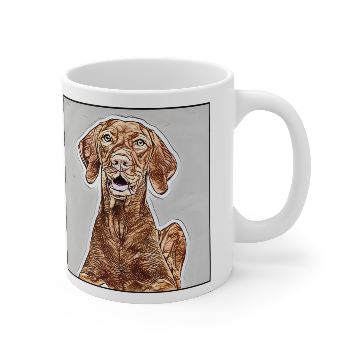 Keep cozy and warm with a nice cuppa, featuring the beloved Vizsla dog breed stylized in our Coloromo Penciled In art on a ceramic mug. Lead and BPA-free, these durable mugs are also microwave & dishwasher-safe. Made of white, resilient ceramic in an 11-ounce size, this is the perfect gift for coffee, tea, and hot chocolate lovers.