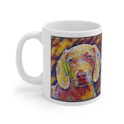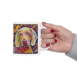 Keep cozy and warm with a nice cuppa, featuring the beloved Weimaraner dog breed stylized in our Coloromo Party Confetti art on a ceramic mug. Lead and BPA-free, these durable mugs are also microwave & dishwasher-safe. Made of white, resilient ceramic in an 11-ounce size, this is the perfect gift for coffee, tea, and hot chocolate lovers.