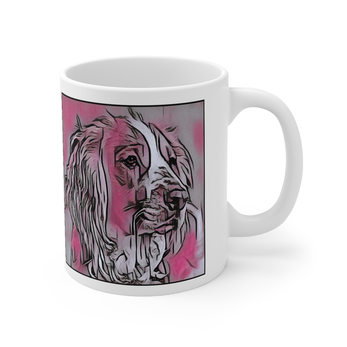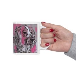 Keep cozy and warm with a nice cuppa, featuring the beloved Welsh Springer Spaniel dog breed stylized in our Coloromo Comic Pink art on a ceramic mug. Lead and BPA-free, these durable mugs are also microwave & dishwasher-safe. Made of white, resilient ceramic in an 11-ounce size, this is the perfect gift for coffee, tea, and hot chocolate lovers.