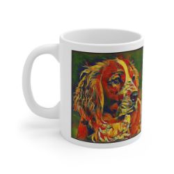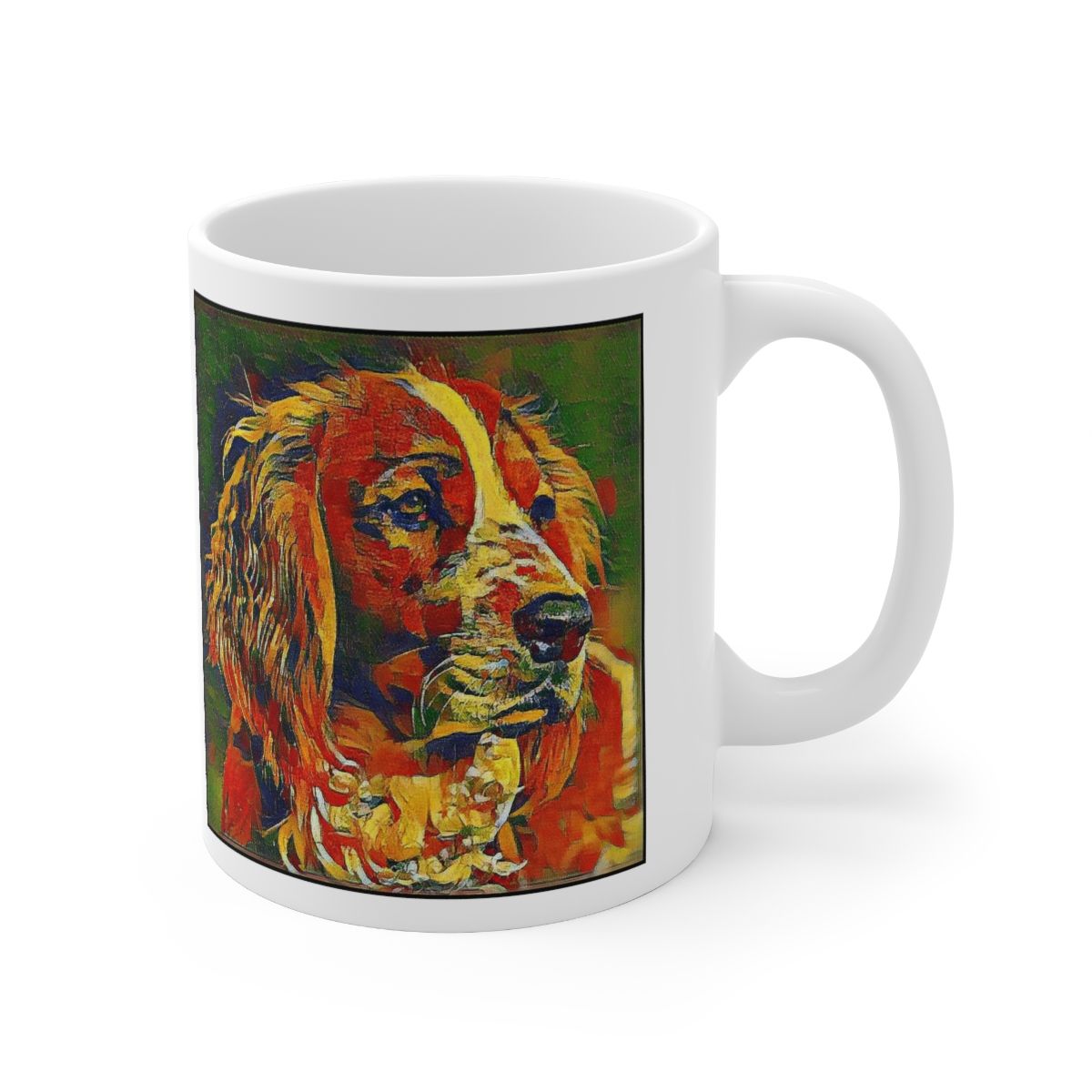 Keep cozy and warm with a nice cuppa, featuring the beloved Welsh Springer Spaniel dog breed stylized in our Coloromo Garden Veggie art on a ceramic mug. Lead and BPA-free, these durable mugs are also microwave & dishwasher-safe. Made of white, resilient ceramic in an 11-ounce size, this is the perfect gift for coffee, tea, and hot chocolate lovers.