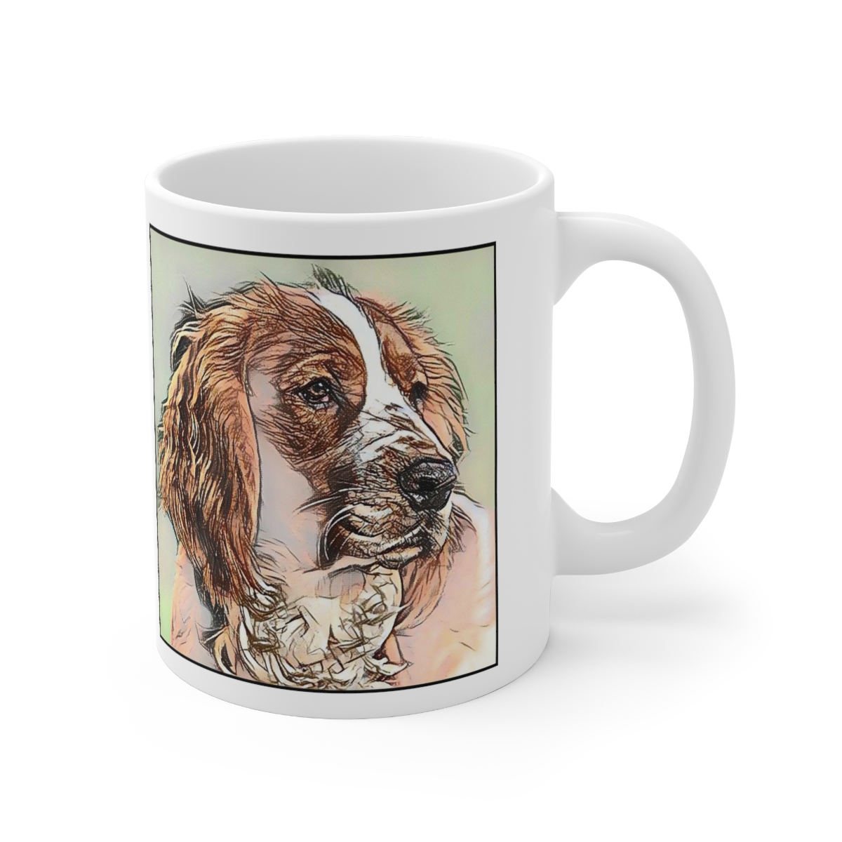 Keep cozy and warm with a nice cuppa, featuring the beloved Welsh Springer Spaniel dog breed stylized in our Coloromo Penciled In art on a ceramic mug. Lead and BPA-free, these durable mugs are also microwave & dishwasher-safe. Made of white, resilient ceramic in an 11-ounce size, this is the perfect gift for coffee, tea, and hot chocolate lovers.