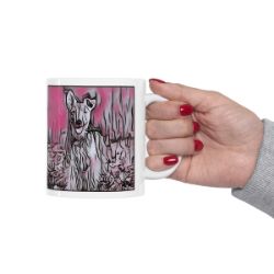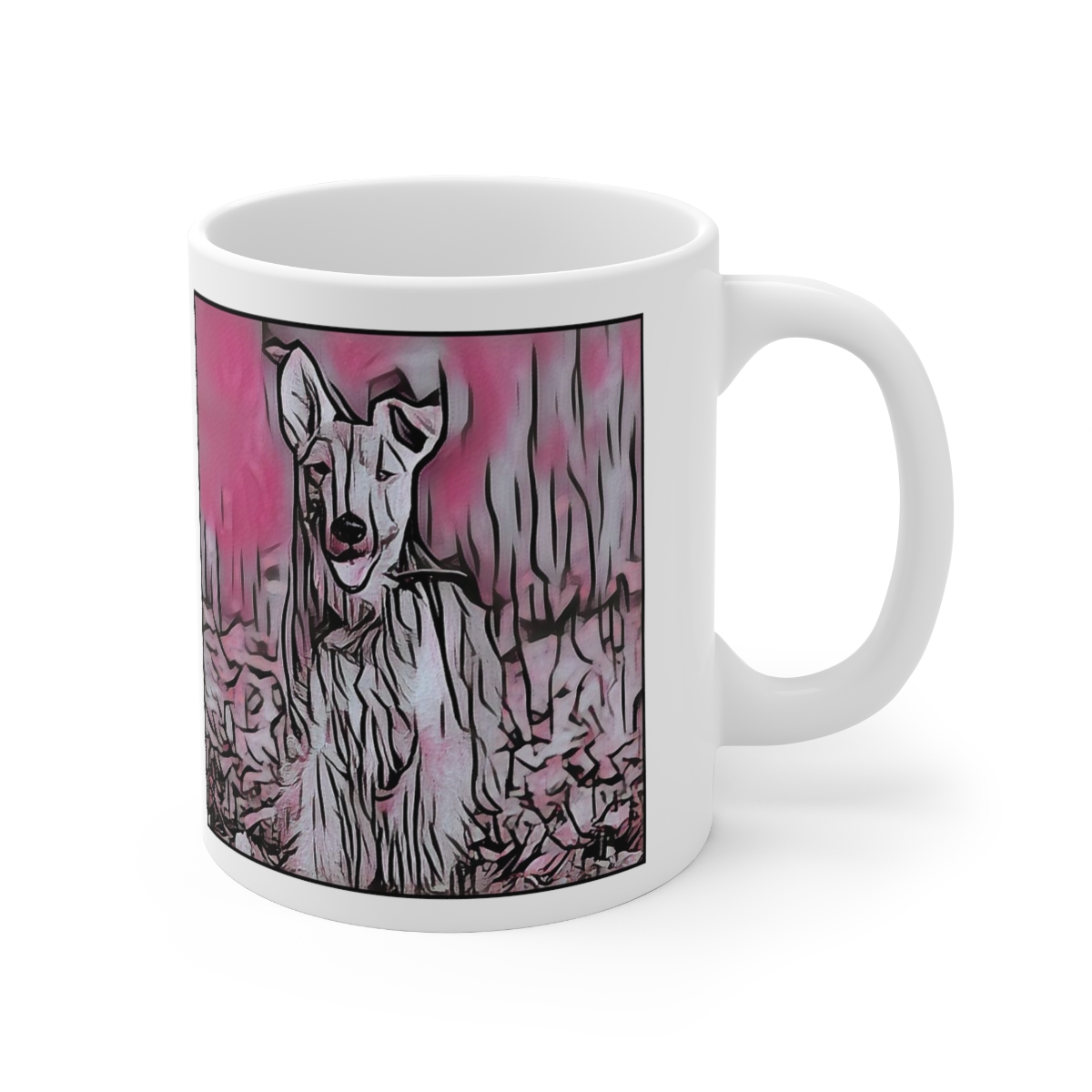 Keep cozy and warm with a nice cuppa, featuring the beloved Welsh Terrier dog breed stylized in our Coloromo Comic Pink art on a ceramic mug. Lead and BPA-free, these durable mugs are also microwave & dishwasher-safe. Made of white, resilient ceramic in an 11-ounce size, this is the perfect gift for coffee, tea, and hot chocolate lovers.