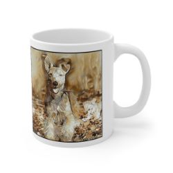 Keep cozy and warm with a nice cuppa, featuring the beloved Welsh Terrier dog breed stylized in our Coloromo Hairy Styles art on a ceramic mug. Lead and BPA-free, these durable mugs are also microwave & dishwasher-safe. Made of white, resilient ceramic in an 11-ounce size, this is the perfect gift for coffee, tea, and hot chocolate lovers.