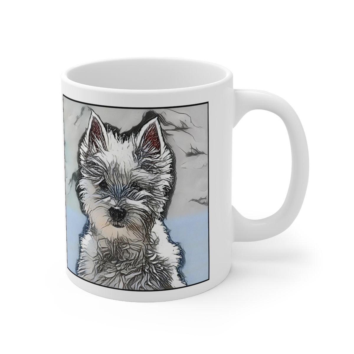 Keep cozy and warm with a nice cuppa, featuring the beloved West Highland Terrier dog breed stylized in our Coloromo Penciled In art on a ceramic mug. Lead and BPA-free, these durable mugs are also microwave & dishwasher-safe. Made of white, resilient ceramic in an 11-ounce size, this is the perfect gift for coffee, tea, and hot chocolate lovers.