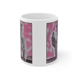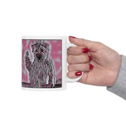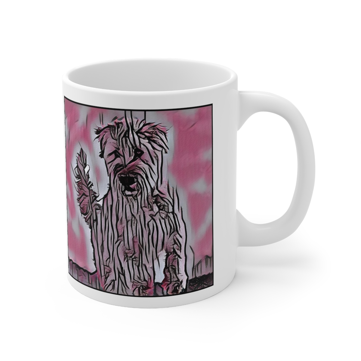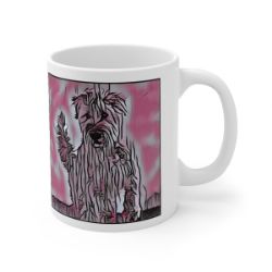Keep cozy and warm with a nice cuppa, featuring the beloved Wheaten Terrier dog breed stylized in our Coloromo Comic Pink art on a ceramic mug. Lead and BPA-free, these durable mugs are also microwave & dishwasher-safe. Made of white, resilient ceramic in an 11-ounce size, this is the perfect gift for coffee, tea, and hot chocolate lovers.
