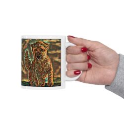 Keep cozy and warm with a nice cuppa, featuring the beloved Wheaten Terrier dog breed stylized in our Coloromo Cool Cubist art on a ceramic mug. Lead and BPA-free, these durable mugs are also microwave & dishwasher-safe. Made of white, resilient ceramic in an 11-ounce size, this is the perfect gift for coffee, tea, and hot chocolate lovers.