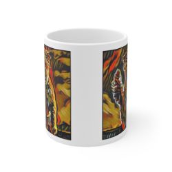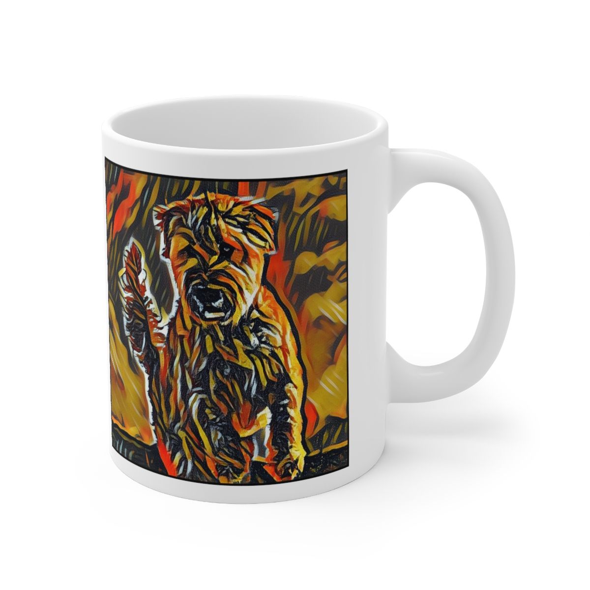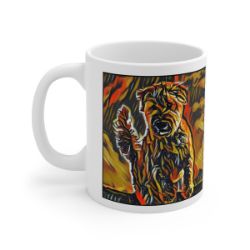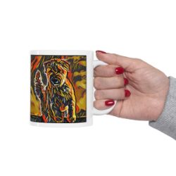 Keep cozy and warm with a nice cuppa, featuring the beloved Wheaten Terrier dog breed stylized in our Coloromo Graffiti Haus art on a ceramic mug. Lead and BPA-free, these durable mugs are also microwave & dishwasher-safe. Made of white, resilient ceramic in an 11-ounce size, this is the perfect gift for coffee, tea, and hot chocolate lovers.