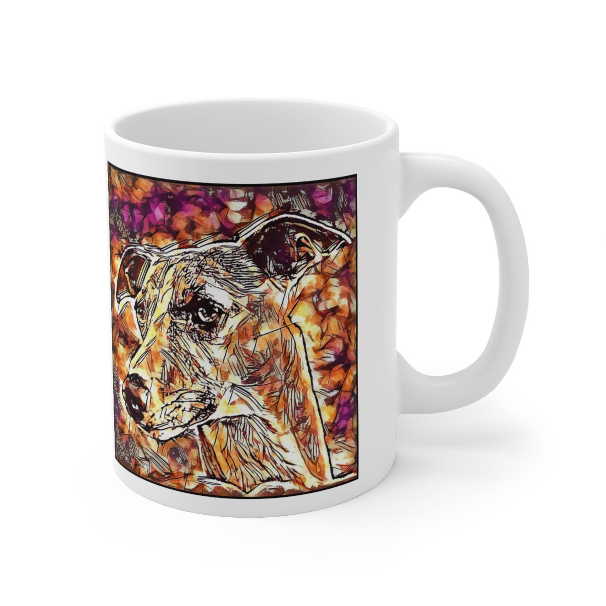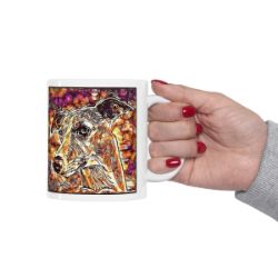 Keep cozy and warm with a nice cuppa, featuring the beloved Whippet dog breed stylized in our Coloromo Hipster art on a ceramic mug. Lead and BPA-free, these durable mugs are also microwave & dishwasher-safe. Made of white, resilient ceramic in an 11-ounce size, this is the perfect gift for coffee, tea, and hot chocolate lovers.