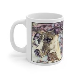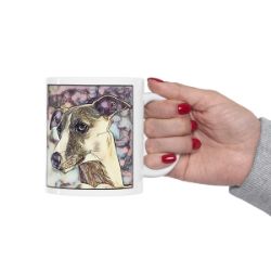 Keep cozy and warm with a nice cuppa, featuring the beloved Whippet dog breed stylized in our Coloromo Penciled In art on a ceramic mug. Lead and BPA-free, these durable mugs are also microwave & dishwasher-safe. Made of white, resilient ceramic in an 11-ounce size, this is the perfect gift for coffee, tea, and hot chocolate lovers.