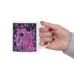Keep cozy and warm with a nice cuppa, featuring the beloved Whippet dog breed stylized in our Coloromo Violet Femmes art on a ceramic mug. Lead and BPA-free, these durable mugs are also microwave & dishwasher-safe. Made of white, resilient ceramic in an 11-ounce size, this is the perfect gift for coffee, tea, and hot chocolate lovers.